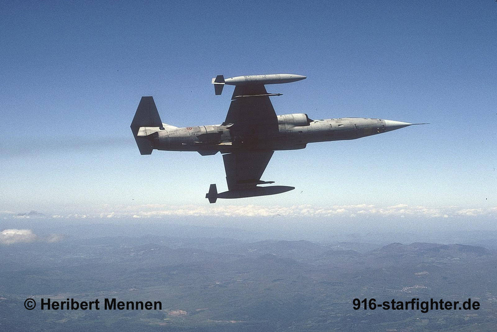 F-104S.ASA "4-14" 9°Gruppo of 4°Stormo all weather fighter-interceptors (CIO) 2001 F-104S, construction number 783-1175, serial number MM6875, model 783, built by Aeritaliadelivery date AMI 30.8.1975; delivery date 23°Gruppo 6.10.1975, 5-36 10.1975-29.3.1976; delivery date 10°Gruppo 29.3.1976, 9-34 04.1976-19.7.1979 IRAN 19.7.1979-14.3.1980; delivery date 12°Gruppo 27.3.1980, 36-10 05.1980-12.4.1983; IRAN 10.4.1984-15.1.1985; delivery date 12°Gruppo 24.1.1985, 36-22 9.4.1985-16.6.1989 IRAN + F-104S.ASA conversion 12.9.1989-01.1991; delivery date 23°Gruppo 22.1.1991, 5-32 19.6.1991-04.1995; IRAN 31.3.1995-21.5.1997, respray in grey camouflage scheme delivery date 10°Gruppo 29.5.1997, 9-33 06.1997-18.8.1999; delivery date 9°Gruppo 18.8.1999, 4-14 25.9.1999-20.2.2002, last flight to Grazzanise 20.2.2002 with 4.428 flight hours withdrawn from use 21.2.2002-11.11.2003; dump Cervia 7.8.2004 preserved Piacenza as "50-03" 16.9.2005; March 31, 2010 noted; March 8, 2011 noted; March 2024 noted.