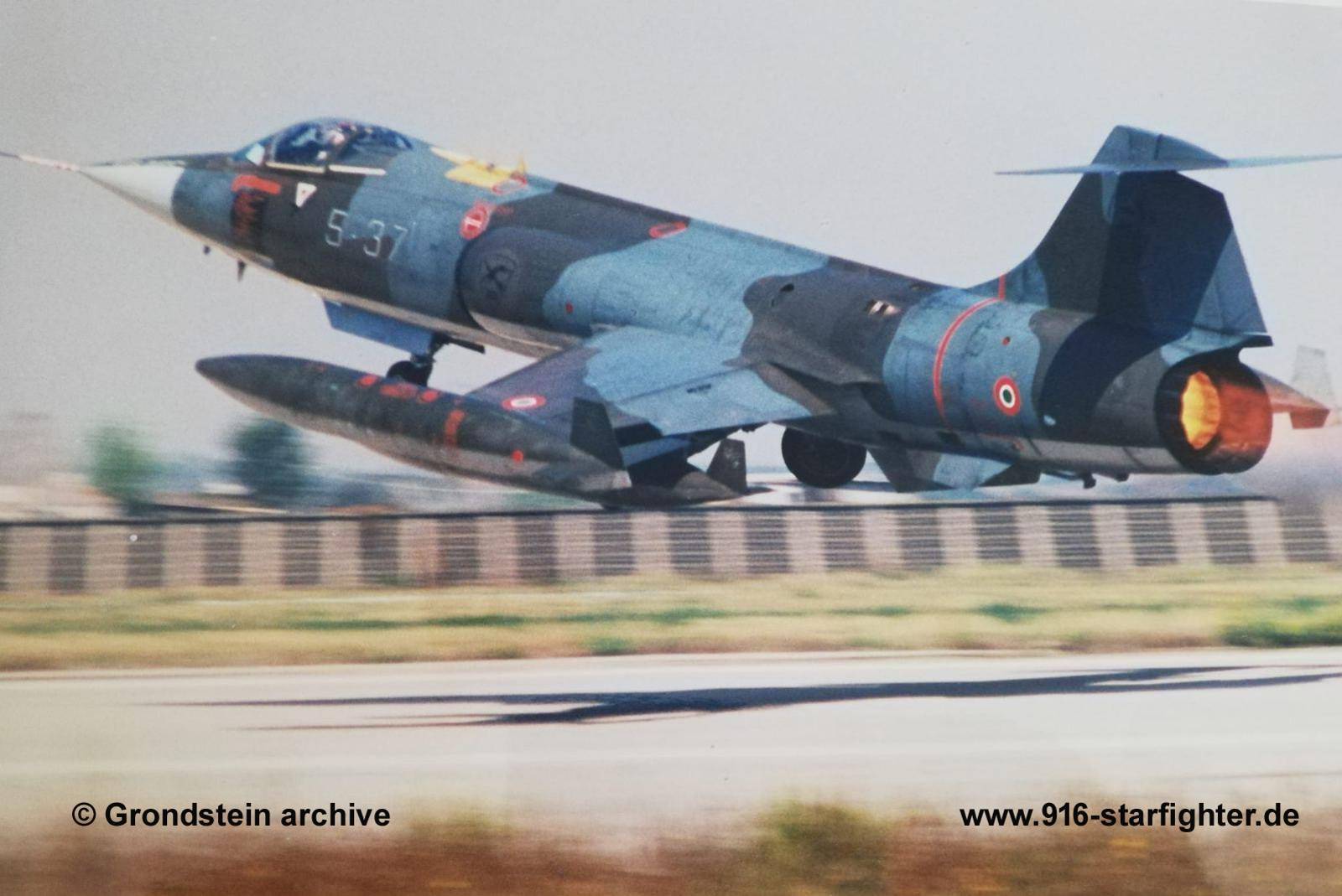 F-104S.ASA "5-37" 23°Gruppo of 5°Stormo Aeronautica Militare Italiana (Italian Air Force) 1996 F-104S, construction number 783-1062, serial number MM6762, model 783, built by Aeritaliaproduction line 28.4.1970; delivery date AMI 28.8.1970; 4-12 IX Gruppo CIO 4 Stormo "Amedeo d'Aosta"; 4-8 IX Gruppo delivery date 22°Gruppo 51 Stormo "Ferruccio Serafini" 4.8.1972 51-07 08.1972-12.7.1974; IRAN 12.7.1974-14.2.1975; 53-11 21 Gruppo Caccia Intercettori Ognitempo 53 Stormo "Guglielmo Chiarini" 19.8.1975-11.3.1979; IRAN 11.3.1979-31.3.1980 delivery date 22°Gruppo 18.4.1980, 51-16 22 Gruppo CIO 51 Stormo 51 14.1.1981-6.9.1984; delivery date 311°Gruppo 6.9.1984; IRAN till 19.12.1985 delivery date X Gruppo CIO 9 Stormo "Francesco Baracca" 19.12.1985, 9-33 01.1986-17.9.1989; at Ramstein August 10, 1986; delivery date 21°Gruppo 17.9.1989, 53-21 10.1989-22.8.1990 delivery date 10°Gruppo 22.8.1990; IRAN + F-104S.ASA conversionn from 9.10.1990 to 28.05.1992; 5-43 23 Gruppo CIO 5 Stormo Caccia "Giuseppe Cenni" 08.1992-26.9.1996 Special colors mid December 1993 (only four days) (code 5-43 not painted) "20 Anniversary F-104" and "75 anno" of 23°Gruppo 1918-1993 Alenia for IRAN + F-104S.ASA-M conversion 8.7.1997-22.3.1999; grey camouflage scheme; delivery date 23 Gruppo 5 Stormo "Giuseppe Cenni" 22.3.1999; 5-46 10.3.1999-10.10.2002 9-43 withdrawn from use Grazzanise with 5.427 flying hours June 7, 2003; official CFE date September 30, 2004; 10.10.2005 noted F-104S MM6737 "9-51" preserved in Vairano Scalo at the ISISS G. (ITIS) Marconi; July 2006 first noted (it has CFE-plate from MM6879); June 2019 last noted for restoration at Grazzanise in 2020; restoration at Grazzanise October 22, 2022 last noted; "9-51" at Volandia Museo del Volo and officially added to the collection on Friday March 10, 2023.