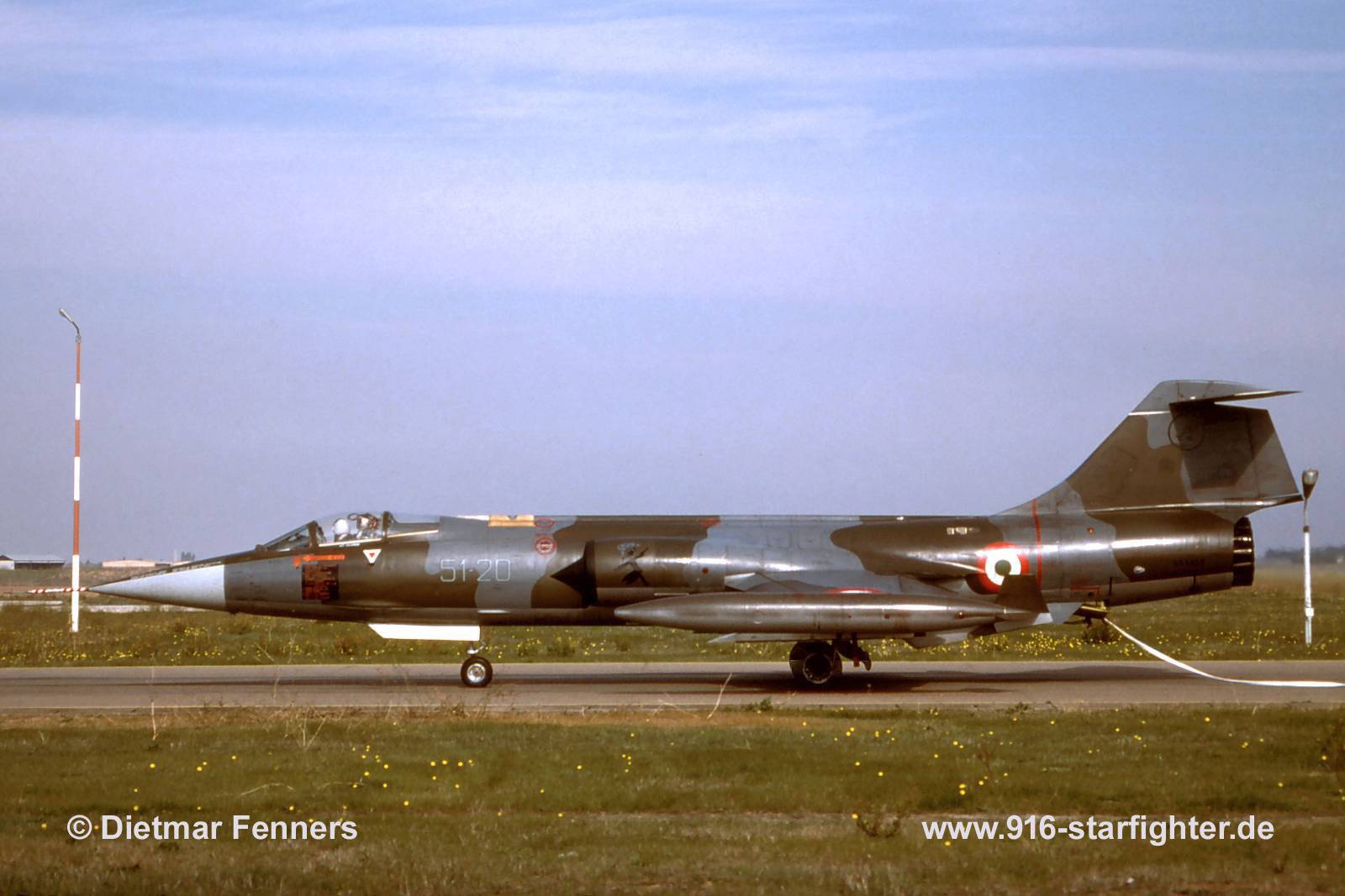 F-104S "51-20" 22°Gruppo of 51°Stormo after landing at Decimomannu AB in October 1986 F-104S, construction number 783-1150, serial number MM6850, model 783, built by AeritaliaAeritalia delivery date 23.7.1974; 53-10 10.1975-11.1981 21 Gruppo CIO 53 Stormo; IRAN 1.2.1983-2012.1983 delivery date 22°Gruppo 23.12.1983, 51-20 12.1.1984-20.1.1988 22 Gruppo Caccia Intercettori Ognitempo 51 Stormo; IRAN 20.1.1988 and F-104S.ASA conversion until 25.5.1989 36-02 8.6.1989-28.6.1992 XII Gruppo Caccia Intercettori Ognitempo 36 Stormo 36-02 which should have a special zapping during the squadron exchange at Twenthe AB by 313 squadron (in 1989 12 Gruppo went to Twenthe for an exchange with 313 sqn) IRAN till 28.12.1994; delivery date 22°Gruppo 9.1.1995, 51-12 11.1.1995-20.10.1998, 22 Gruppo was disbanded on 25.02.1999 delivery date 10°Gruppo 20.10.1998, 9-50 12.11.1998-10.12.1998 X Gruppo Caccia Intercettori Ognitempo 9 Stormo IRAN + F-104S.ASA-M conversion 10.12.1998-11.7.2000; grey camo scheme; delivery date 18°Gruppo 11.7.2000, 37-24 08.2000-15.4.2002 18 Gruppo Caccia Intercettori Ognitempo 37 Stormo 5-41 12.2002-01.2003; uncoded 37°Stormo 18°Gruppo 12.3.2003 37-24 26.4.2003-10.5.2004 18 Gruppo Caccia Intercettori Ognitempo 37 Stormo flying with 9 Gruppo as "37-24" from April 2003 (and this was still on loan) 4-16 (26.5.2004-31.10.2004) active Grosseto AB; last flight 31.10.04; withdrawn from use 1.11.2004 Grazzanise AB stored April 2005 noted; Grazzanise AB storage flightline in June 2011; no further information. copyright © Dietmar Fenners