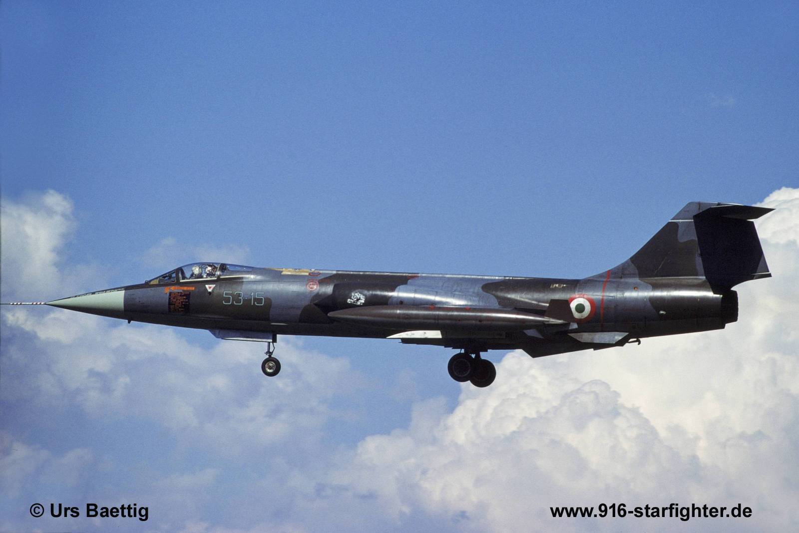 F-104S "53-15" 21°Gruppo of 53°Stormo from Cameri AB with "Tiger" head on intake 1988 F-104S, construction number 783-1181, serial number MM6881, model 783, built by Aeritaliadelivery date AMI 30.11.1975; 53-12 21°Gruppo 53°Stormo "Guglielmo Chiarini" at Cameri 30.11.1975-05.1980 April 1979 squadron exchange between the Dutch AF 312 Squadron at Volkel AB flying the F-104G and the Italian AF 21 Gruppo at Cameri AB flying the F-104S IRAN till 16.11.1983; delivery date 21°Gruppo 20.12.1983, 53-15 09.1984-10.7.1988; IRAN + F-104S.ASA conversion 14.4.1988-12.9.1989 delivery date 12°Gruppo 12.9.1989, 36-16 11.10.1989-9.7.1993; IRAN 3.9.1993-10.7.1995; delivery date 23°Gruppo 31.7.1995, 5-42 10.1995-3.9.1998 delivery date 10°Gruppo 13.7.1998; IRAN + F-104S.ASA-M conversion 8.10.1998-21.12.1999; grey camouflage scheme delivery date 23°Gruppo 21.12.1999, 5-44 30.12.1999-16.5.2002; delivery date 20°Gruppo 17.4.2002, 4-59 2.8.2002-12.2003; stored 22.3.2004-7.4.2004 operational 26.5.2004-3.9.2004; last flight to Grazzanise 3.9.2004 with 4.130 flight hours; withdrawn from use 5.9.2004 Grazzanise AB stored 07.2011 noted (CFE plate MM6816). copyright © Urs Baettig