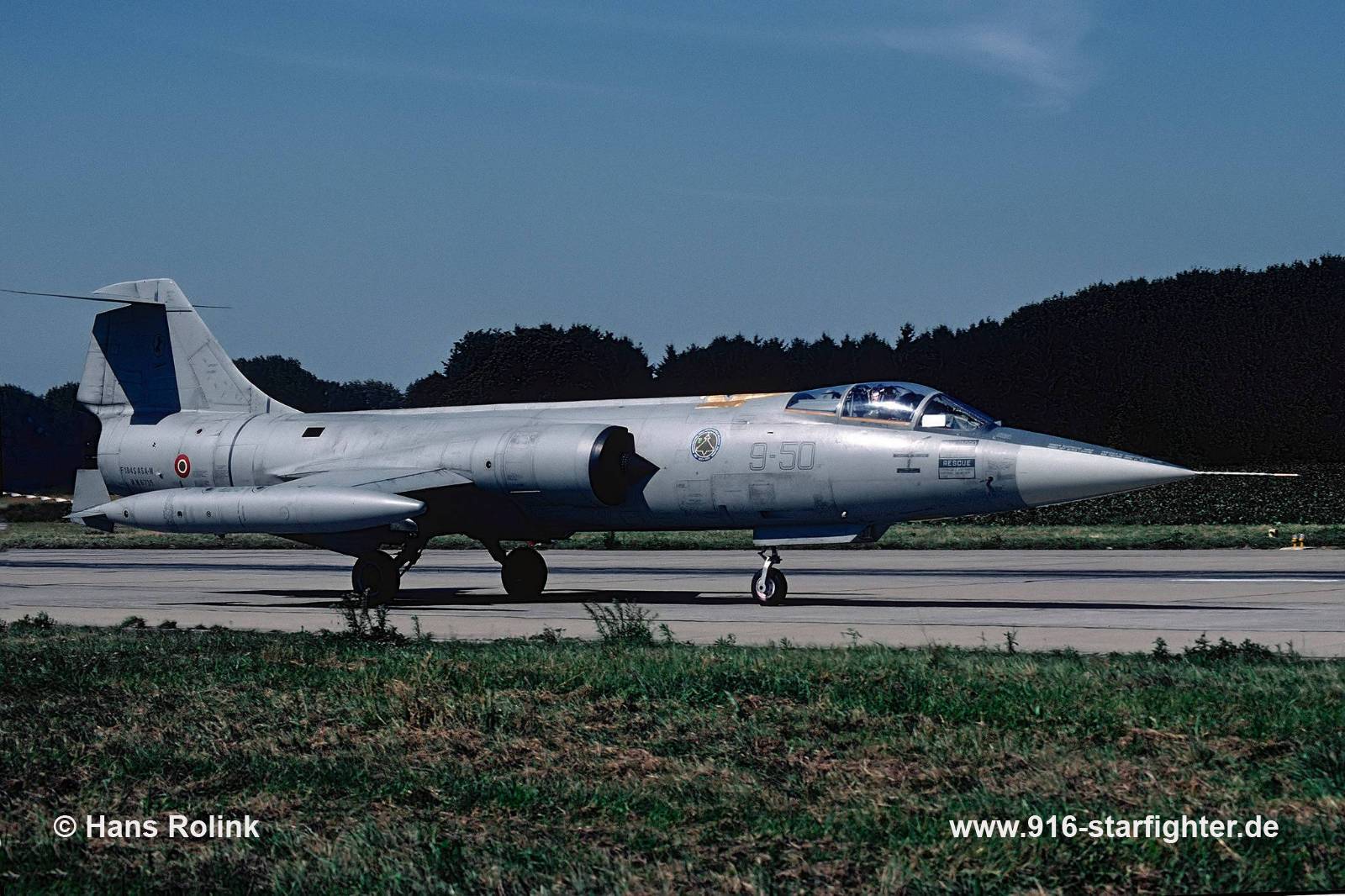 F-104S.ASA-M "9-50" 10°Gruppo of 9°Stormo "Francesco Baracca" at Beauvechain September 1999 F-104S, construction number 783-1035, serial number MM6735, model 783, built by Aeritaliadelivery date AMI 1:9:!)70; 4-12 06.1971-8.6.1972; IRAN till 13.2.1975; delivery date 21°Gruppo 13.2.1975, 53-06 15.10.1975-3.5.1979; IRAN 3.5.1979-4.1.1980 delivery date 21°Gruppo 4.1.1980, uncoded 21°Gruppo 20.5.1980-14.6.1980, 53-01 10.1980, stored 3°GEV after damage suffered in flight 05.1982, 53-01 02.1983-11.1.1985 IRAN 11.1.2985-4.10.1985; delivery date 21°Gruppo 4.10.1985, uncoded 12.1985, 53-07 15.6.1986-5.12.1989; Alenia for IRAN + F-104S.ASA conversion 5.12.1989-26.3.1991 delivery date 23°Gruppo 11.6.1991, 5-46 7.8.1991-16.2.1994; delivery date 22°Gruppo 16.2.1994, 51-22 4.3.1994-9.10.1995; IRAN + F-104S.ASA-M conversion 9.10.1995-30.12.1997 respray in grey camouflage scheme; delivery date 23°Gruppo 30.12.1997, 5-35 01.1998-28.4.1999; delivery date 10°Gruppo 28.4.19/99, 9-50 22.8.1999-17.12.2001 withdrawn from use Grazzanise with 4.778 flight hours 20.12.2001-25.5.2007 stored Grazzanise without wings 2002 noted Grazzanise CFE flightline with CFE plate of MM6737 April 28, 2003 first noted; CFE flightline with fuselage June 16, 2010 last noted; scrapped. copyright © Hans Rolink