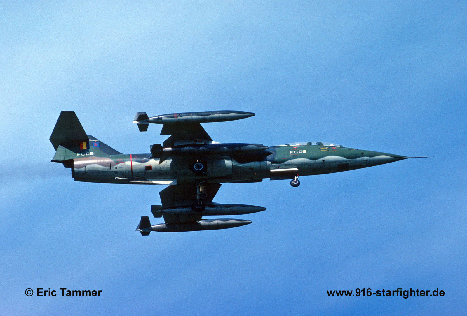 TF-104G "FC06" BAF 31 squadron (Tiger) of 10 Wing from Beauvechain AB 1981 TF-104G, construction number 583G-5103, model 583-10-20, built by Lockheed, assembled by SABCA for Belgium under MAP program; reassembled by SABCA 1967assembled by SABCA, registered 5103 during SABCA test flights, delivery date December 18, 1967 coded FC06 to "Flight-TF" OCF 10 Wing last flight by 31 squadron 10 Wing on July 1, 1982; Koksijde for storage on February 16, 1983; withdrawn from use January 1987; sold to Radcomm January 1987