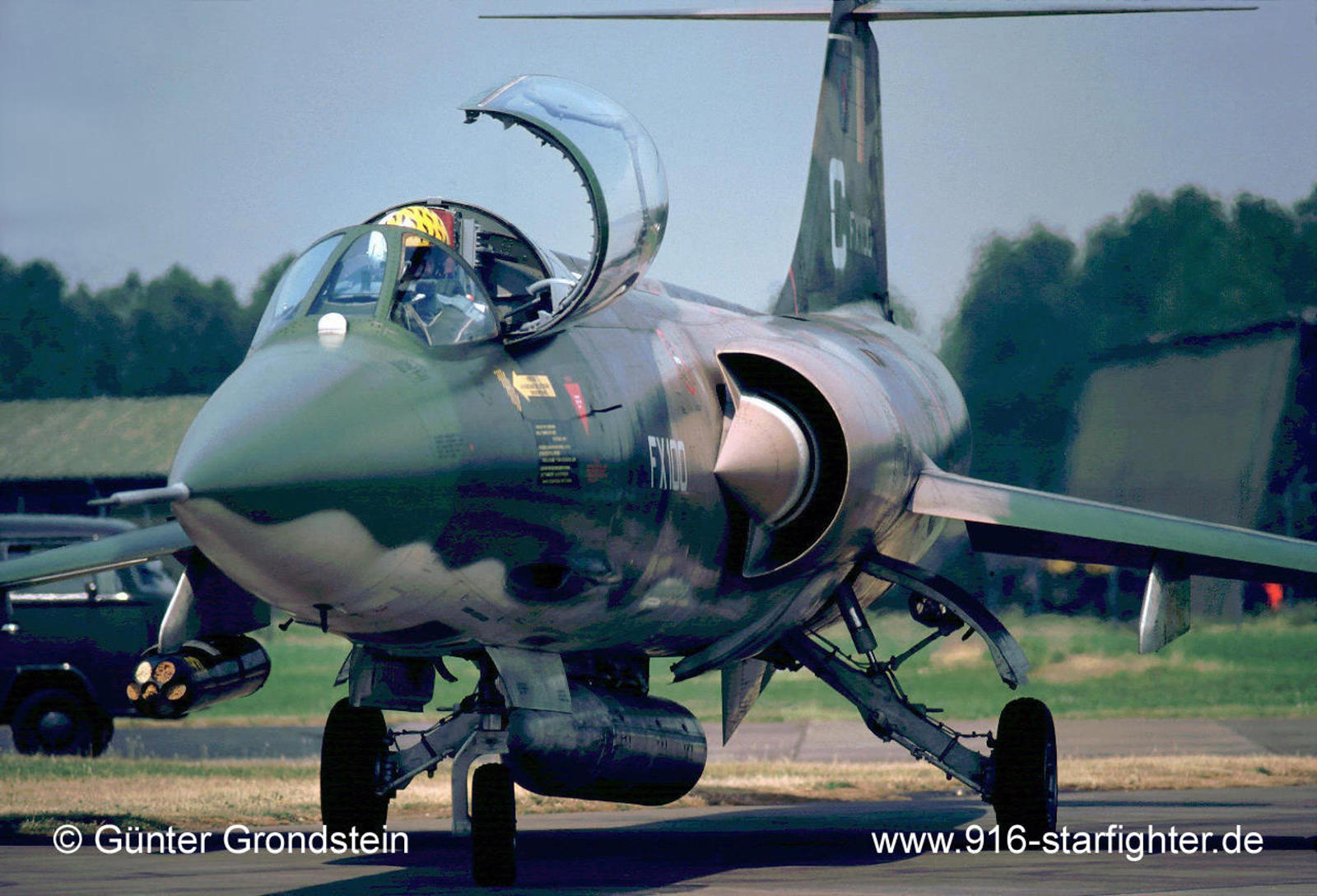 F-104G FX100 "C" BAF 31 Squadron 10 Wing at RAF Wildenrath during Tactical Air Meet'78 June 1978 F-104G, construction number 683D-9176, model 683-10-19, built by SABCAFX100 taken on service May 8, 1965 at Gosselies AP, on May 8, 1967 to 10 Wing; on May 8, 1967 to 1 Wing; on August 6, 1969 to 10 Wing, 31 Sqn at RAF Wildenrath during Tactical Air Meet'78 June 1978, withdrawn from use and stored January 28, 1982 at Koksijde AB stored Koksijde January 1982-June 19l90; stored at Kleine Brogel 1991 until 1994, struck off charge 1987; transported to Kleine Brogel AB in 1991 sold Radcomm Enterprise parts early 1994; totally stripped from any operational parts; on display on pole at the village of Kampenhout near Mechelen, Belgium on March 26, 1994; owned by Jozef Maes, boss of ASCO in his private collection; 2004 noted March 17, 2007 noted preserved at Boordmeerbeek-Kampenhout in the garden of the president of RADCOMM Enterprises, sits on concrete stands facing nose into the sky, poor condition, lots of corrosion; for sale in 2012 for 7500 Euro and sold in 2013 and finally in January 2014 it moved to the new owner (company ASCO) at Sterrebeek-Zaventem, Belgium. There it was put in storage awaiting full restoration ASCO has now still both aircraft in parts in his garden at Sterrebeek for many years and the 2021 images show that they have not started yet; actually in a very bad condition August 2023 noted. copyright © Günter Grondstein