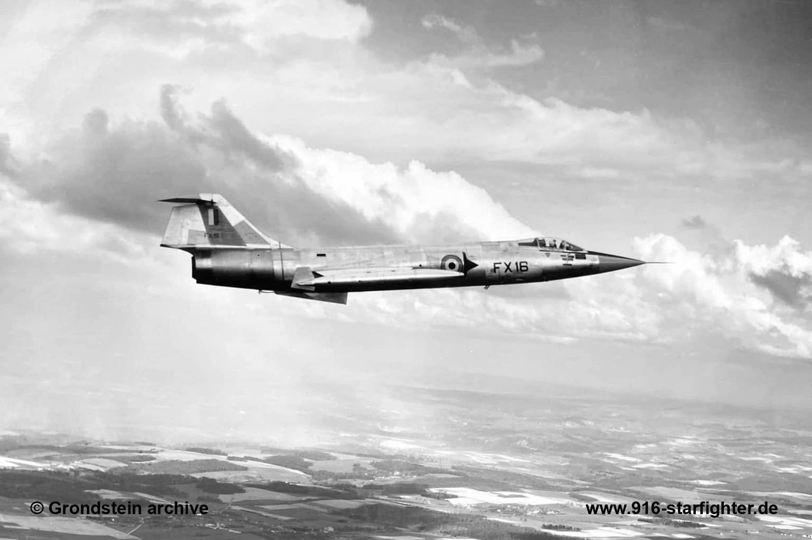 F-104G "FX16" 349 squadron of 1 Wing Belgian Air Force at Beauvechain AB in 1963 F-104G, construction number 683D-9038, model 683-10-19, built by SABCAMAP (Military Assistance Program) aircraft FX15 delivery date and taken on charge October 17, 1963; October 1963 to 350 squadron of 1 Wing crashed December 14,1966 with 1 Wing at L'Ecluse, Belgium after loss of control on approach, pilot (CO 350 Squadron) was killed at the end of the return flight the pilot loses control over the aircraft during a 'pitch up' and crashes near L'Ecluse (Beauvechain), the pilot ejected, but because the aircraft was at an angle of 90° there was not enough time to get a "man/seat separation", the pilot was killed. copyright © Grondstein archive