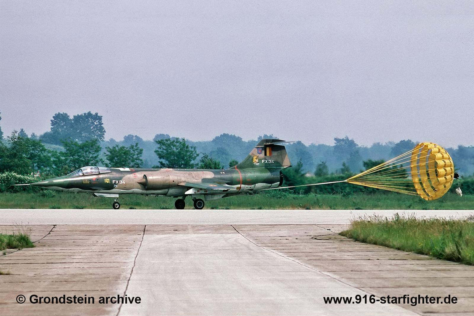F-104G "FX34" 31 Smaldeel (squadron) of 10 Wing from Kleine-Brogel AB during Tiger Meet 1980 at Cameri AB, France F-104G, construction number 683D-9071, model 683-10-19, built by SABCAtaken on service March 9,1964 to 349 squadron of 1 Wing as FX34; December 2, 1964 lost target dart at Solenzara December 10, 1964 a violent take-off aborted due to heavy shimmy on the nosewheel, stopped successfully by barrier despite the high weight (23.000 pounds) and high speed (160 kts), pilot was ok in 1968 to 10 Wing; August 1969 at Woodbridge with 31 squadron (Smaldel) at Tiger Meet; at Cameri AB in June 1980 during the Tiger Meet