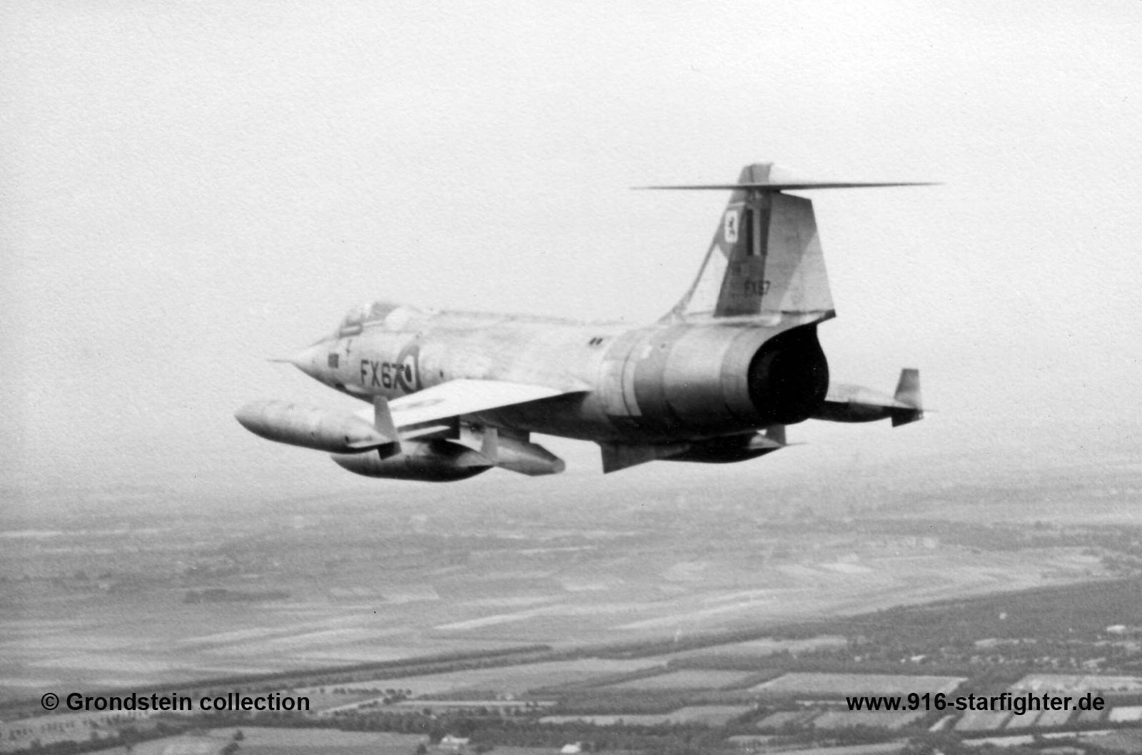 F-104G "FX67" 10 Wing Belgian Air Force F-104G, construction number 683D-9113, model 683-10-19, built by SABCAmanufactured by West Group (ARGE-West); assembly start at SABCA-Gosselies in AWX (All Weather Fighter) version; 17.07.1964 taken on charge for 10 Wing 14.09.1967 birdstrike during takeoff, engine damaged; Woodbridge 4 till 8 August 1969 TigerMeet 31 Smaldeel 29.06.1971 with 1 Wing at Beauvechain after a night flight the aircraft touched down just before the runway 24.03.1972 1 Wing 349 Sqn ran off the runway at Tanagra (Greece) after the gear partially collapsed during taxiing; 23.10.1973 at Beauvechain damaged Greenham Common 22 till 28 June 1977 Tiger Meet during the Air Tattoo; 30.09.1980 arrived at Koksijde for storage (1 Wing / 350 sqn) 01.1987 sold to Radcomm Enterprise and struck of charge; 08.07.1989: last noted stored Koksijde