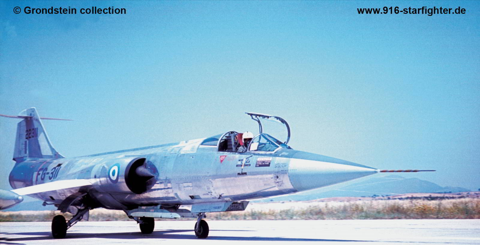 F-104G "FG-311" 335th Mira of 116th Pterix (Wing) Hellenic Air Force at Tanagra AB in the late 60s F-104G, construction number 683D-6010, model 683-10-19, US serial number 62-12311, built by Canadair first flight January 22, 1964, delivery date USAF February 11, 1964MAP (Military Assistance Program) to Greece in June 1964 coded "FG-311"; operated by 116 Wing at Tanagra AB and Araxos AB withdrawn from use 1990, preserved (stored) at Araxos AB in August 1990 noted as fuselage only; stored February 2011 noted; dump October 2017 noted. copyright © Grondstein collection