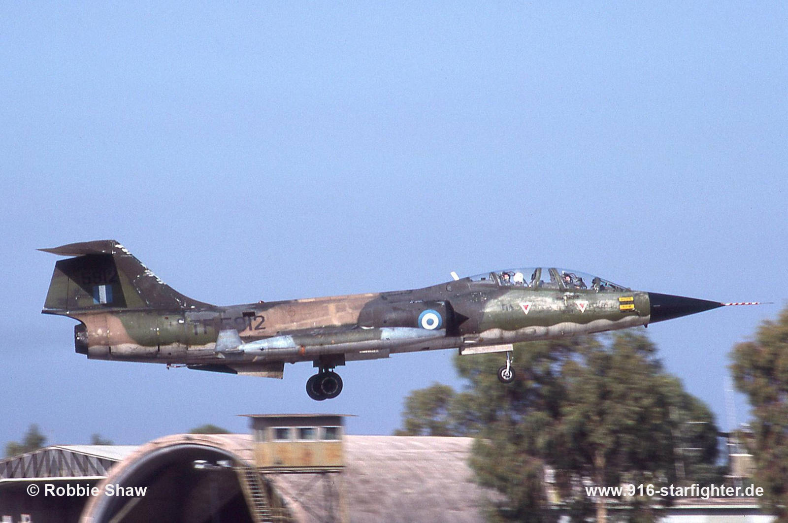 TF-104G "TF-5912" 335 squadron of 116 Combat Wing of Hellenic Air Force at Araxos September 1991 TF-104G, construction number 583F-5912, company model 583-10-20, built by Messerschmitt (MTT)manufactured by Lockheed and Messerschmitt (ARGE-Süd) according contract lot 3; fuselage assembled at Messerschmitt-Augsburg, wings manufactured at Messerschmitt-Manching ARGE-Süd parts (fuselage, wings and tail) airlifted to USA May 10, 1965 with a Canadair CL-44D of "Flying Tiger Line" at Lockheed-Burbank assembled and test flights coded KF+212 at Palmdale in 1965; airlifted to Avio Diepen at Ypenburg, Netherlands on October 27, 1965 for reassembly camouflage scheme "Norm 62" according tech order "TA-196"; acceptance date December 27, 1965 by BABwFokker DB+374 JaboG 32 at Lechfeld AB delivery date on January 5, 1966 27+83 withdrawn from use and stored at LwSchleuse 11 on November 8, 1982 with 2.728 flight hours; struck off charge order (AVA) March 4, 1983