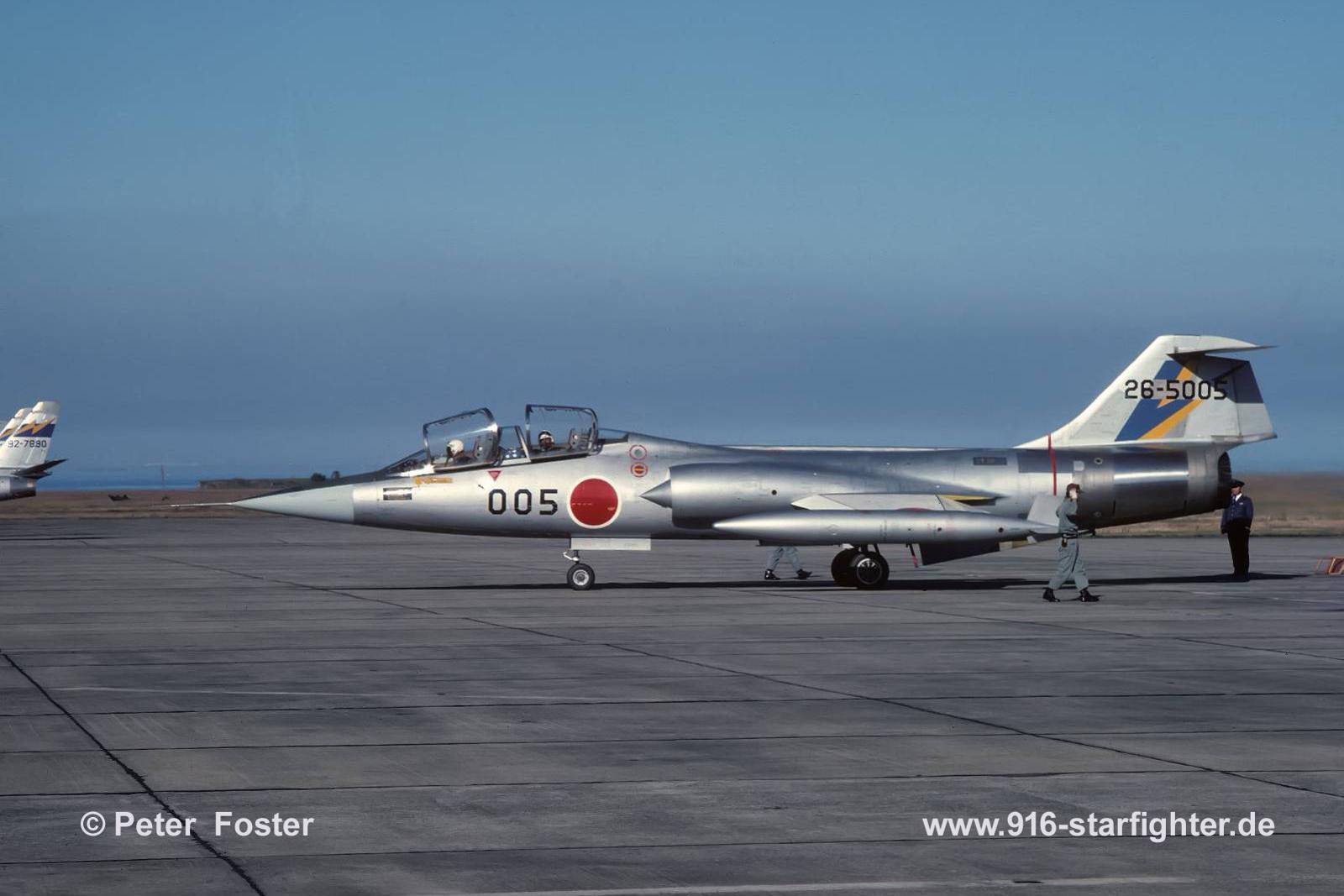 F-104DJ "005" 204 Hikotai, 7 Kokudan, Japanese Air Self Defense Forces (JASDF) in November 1976 F-104DJ, construction number 583B-5405, model 583-10-17, serial number 26-5005, Lockheed built, reassembled by MitsubishiLockheed built, delivered to the Japanese Air Self Defense Forces (JASDF) on September 16, 1962; the first operational years were flown with 201 squadron with 202 squadron seen at Iruma in 1968; in 1970 to 205 squadron of 6 Wing; in 1973 to 203 squadron of 2 Wing in 1974 to 205 squadron of 6 Wing; in 1976 to 204 squadron of 5 Wing; late 70s to 207 squadron of 83 AG withdrawn from use in 1982 at 2nd Supply Depot at Gifu AB; 1991 display as Gate Guard at Gifu AB fuselage stored in old car center at Naraha City, Fukushima Prefecture, October 10, 2004 noted, October 2010 last noted the museum was closed due to the Fukushima nuclear power plant accident for 5 years after the March 11, 2011 earthquake and Tsunami Old Car Center Kudan reopened on Saturday April 2, 2016, fuselage stored; December 2018 noted; April 2023 noted. copyright © Peter foster
