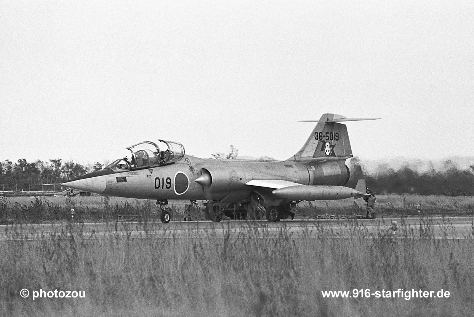 F-104DJ "019" 203 squadron Japanese Air Self Defense Forces (JASDF) at EOR Chitose AB 1979 F-104DJ, construction number 583B-5419, model 583-10-17, serial number 36-5019, Lockheed built, reassembled by MitsubishiF-104DJ, reassembled from supplied knock-down kits by Lockheed; delivery date December 18, 1963; in 1968 with 205 Hikotai of 6 Wing; later 206 Hikotai of 5 Wing in 1972 to 203 Hikotai of 2 Wing; in 1980 206 Hikotai of 5 Wing; withdrawn from use in July 1981; scrapped. copyright © photozou