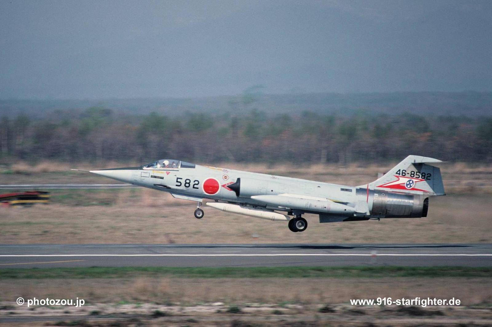F-104J "582" (46-8582) 207 Hikotai (squadron) Japan Air Self-Defense Force (JASDF) taking off at Chitose Air Base in May 1981 F-104J, construction number 683B-3083, model 583-07-14, serial number 56-8671, built by MitsubishiMitsubishi built; delivery date February 20, 1964; first assigned to 202nd Hikoutai at Nyuutabaru; some years later 205th Hikoutai at Komatsu; from 1974 207th Hikoutai at Chitose 1983 retired; to USAF for transfer