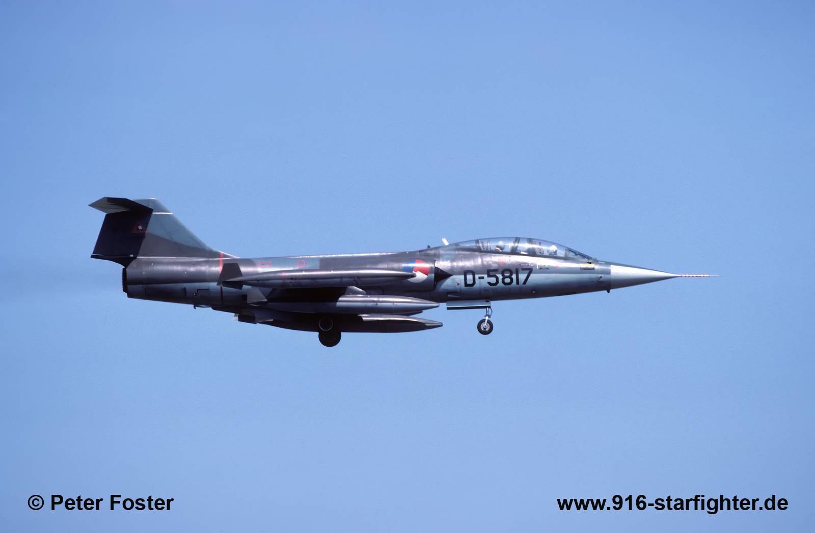 TF-104G "D-5817" TCA (Training en Conversie Afdeling) of Koninklijke Luchtmacht (KLu) at Volkel AB in June 1983 TF-104G, construction number 583E-5817, model 583-10-20, co-produced by FokkerD-5817 taken on charge January 2, 1968, 322/323 squadron pool at Soesterberg AB TCA (Training en Conversie Afdeling (Training and Conversion Unit)) in November 1971 at Leeuwarden AB; CAV (Conversie Afdeling Volkel) in October 1978