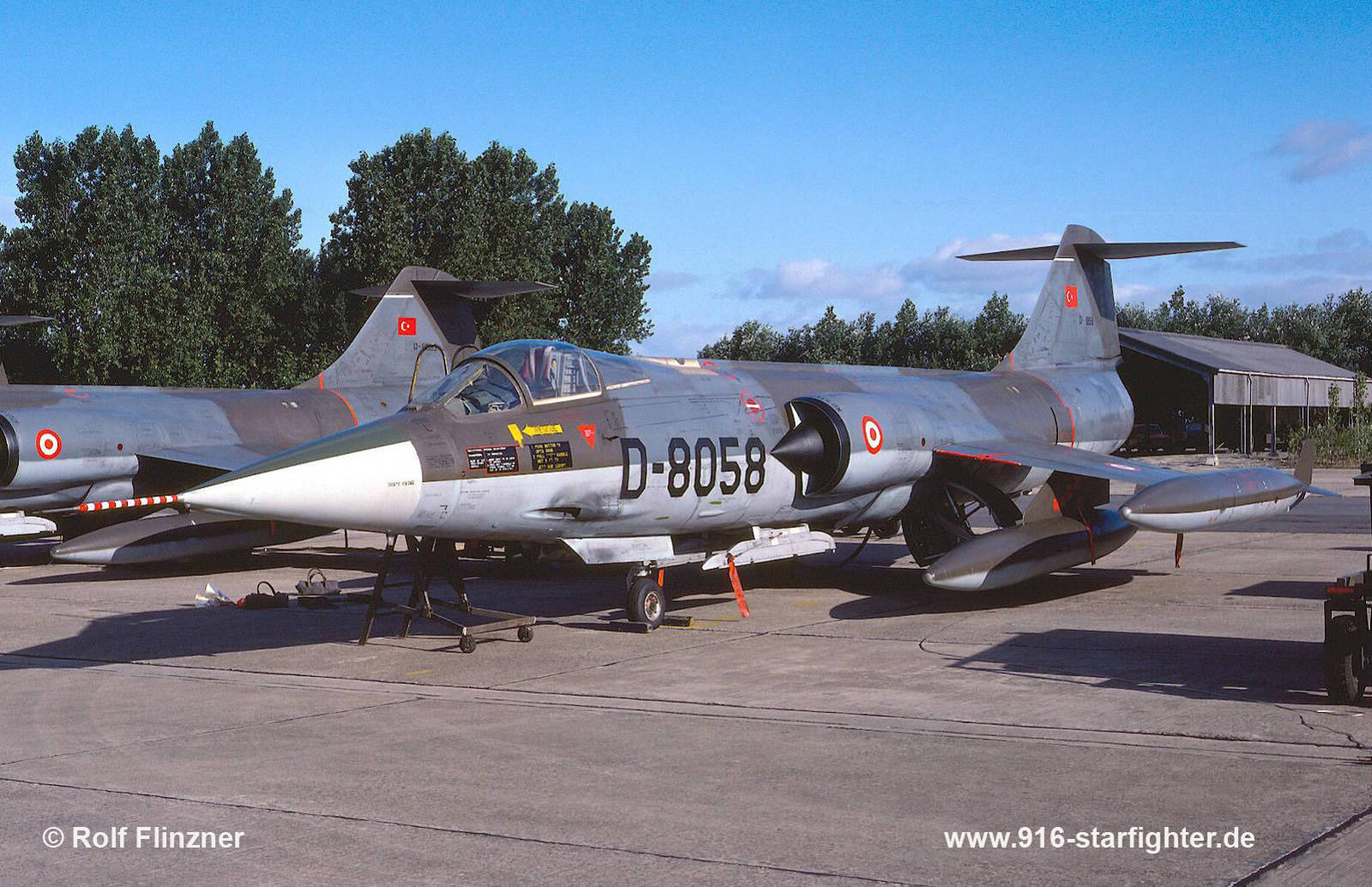 F-104G "D-8058" Volkel AB, Netherlands for delivery to TuAF August 25, 1980 RF-104G, construction number 683D-8058, model 683-04-10, built by Fokkermanufactured by North Group (ARGE-Nord); Fokker factory construction number 10508, F-104G D-8058 taken on charge June 19, 1963 by 306 squadron, to 322/323 squadron