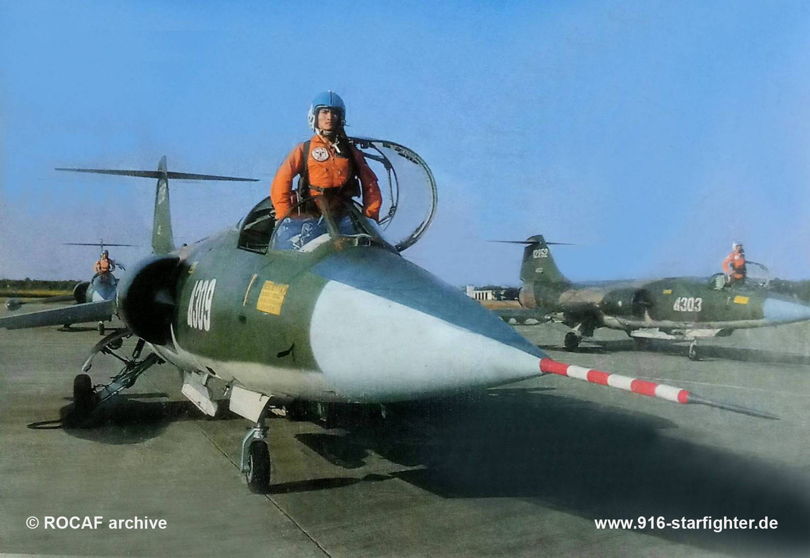 F-104G "4309" 7 TFS of 3 Wing ROCAF at CCK AB (Ching Chuan Kang) F-104G, construction number 683C-4063, model 683-10-19, US serial number 62-12258, built by LockheedMAP (Military Assistance Program) to ROCAF delivery 1963; coded "4309" in 1963 to 7 TFS of 3 Wing (Air Group); 1988 last noted withdrawn from use and stored at Pingtung in August 1996; scrapped. copyright © ROCAF archive