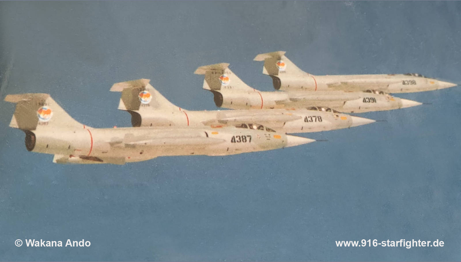 MAP (Military Assistance Program) with project "Ali Shan No.8" coded "4387" to the 41 TFS of 2 Wing of ROCAF at Hsinchu AB; converted to RF-104G with 12 TRS (SMS) of 2 TFW May 16, 1990 aircraft flamed out, couldn't be restarted and crashed into sea near Tao Yuan, pilot ejected safely and was rescued by a fishing boat, written off. copyright © Wakana Ando