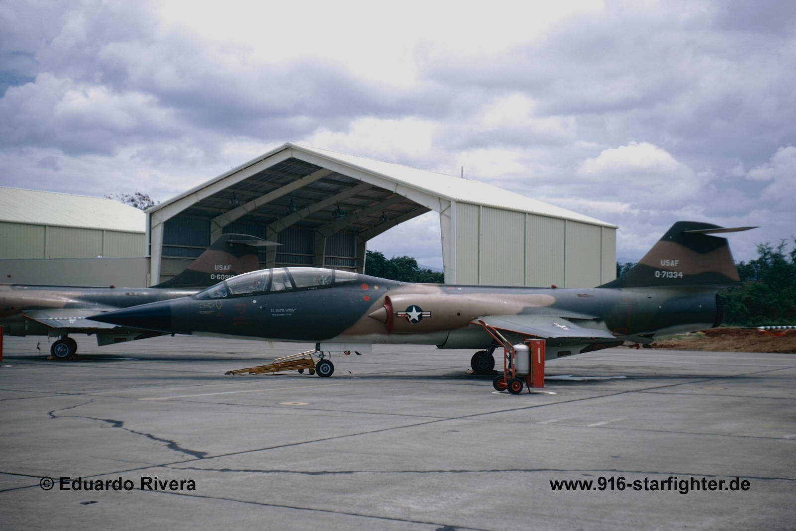 F-104D "0-71334" (57-1334) 198th TFS "Flying Buccaneers" PR ANG at Muniz ANG base 1975 F-104D, construction number 283-5046, model 383-04-06, US serial number 57-1334, built by Lockheeddelivery date October 4, 1959; 479th TFW (October 1959-March 1967); 198 TFS PR ANG (Big-D) September 1967-August 1975; MASDC as "FB055" August 29, 1975 August 1978 dropped from inventory as surplus; ex MASDC April 13, 1984 (RECLM=reclamation) 1984 restored at Burbank by Lockheed staff; at George Izay Park, Burbank near the Lockheed plant on March 30, 1985 in white and two tone blue colors (Lockheed logo and text "Spirit of Burbank") February 10, 2007 noted, December 2007 noted; July 16, 2010 noted; April 2022 noted; repainted 57-1334 at the George Izay Park in Burbank California May 2025 noted. 1964 record breaking flight, the 476th TFW did with Col Darrell Cramer, from George to Moron Air Base in 10 hours. No flight this long had been done in jets, no auto pilot, and with such fast speeds. We were doing more than 600 knots ground speed. We had tail winds going over.