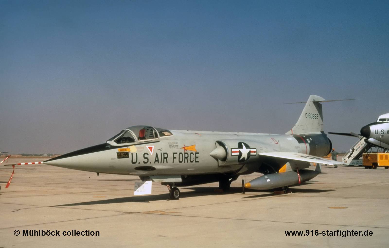 F-104A "0-60882" (56-0882) 319th FIS homested AFB, Florida in July 1969 F-104C, construction number 183-1170, model 183-93-02, US serial number 56-0882, built by Lockheeddelivery date January 2, 1959; 538th Fighter-Interceptor Squadron (Air Defense Command), Larson AFB, WA (January 1959-October 1959) 337th Fighter-Interceptor Squadron (ADC), Westover AFB, MA (October 1959-June 1960); 151st Fighter-Interceptor Squadron (ANG), McGhee-Tyson MAP (June 1960-March 1963) to 319th Fighter-Interceptor Squadron (ADC), Homestead AFB, FL (March 1963-September 1964); 319 FIS for overhaul at McClellan on December 8, 1966; 319 FIS 1969 ADWC (?); MASDC coded "FB028" (11.December 1969-15.May 1970)
