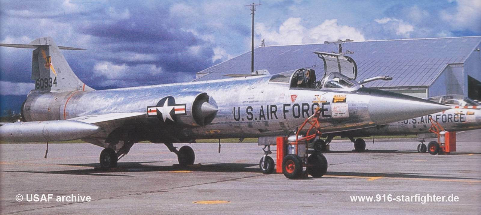 F-104C "60934" (56-0934) 435 TFS of 479 TFW at Clark AFB, Phillipines on its flight back to George AFB, in December 1965 F-104C, construction number 183-1222, model 483-04-05, US serial number 56-0934, built by LockheedJanuary 29, 1959 "FG-934" available; delivery date May 1, 1959, 479th TFW (1960-1968), 435th TFS September 19, 1961 to Ramstein AB, Germany from George direct 436th TFS January 18, 1962 to Hahn AB, Germany, 476th TFS April 8, 1962 Hahn AB, Germany until August 10, 1962; 435th TFS October 12, 1965 - December 18, 1965 at DaNang US Navy on loan noted China Lake May 1968; AFFTC/ARDC (May 1968-December 1973); withdrawn from use December 1973 December 1973 to 35th Tactical Fighter Wing (TAC) George AFB for static display at George AFB, California 1979, marked with GA tail code in "Grey White" colors Seattle "Museum of Flight", Boeing Field, WA in 1993; moved to Great Gallery at the Main Museum March 1998; painted as "NASA 820" June 1990 this Starfighter is painted to represent a NASA F-104 as "NASA 820"; May 2012 noted; November 2024 noted.