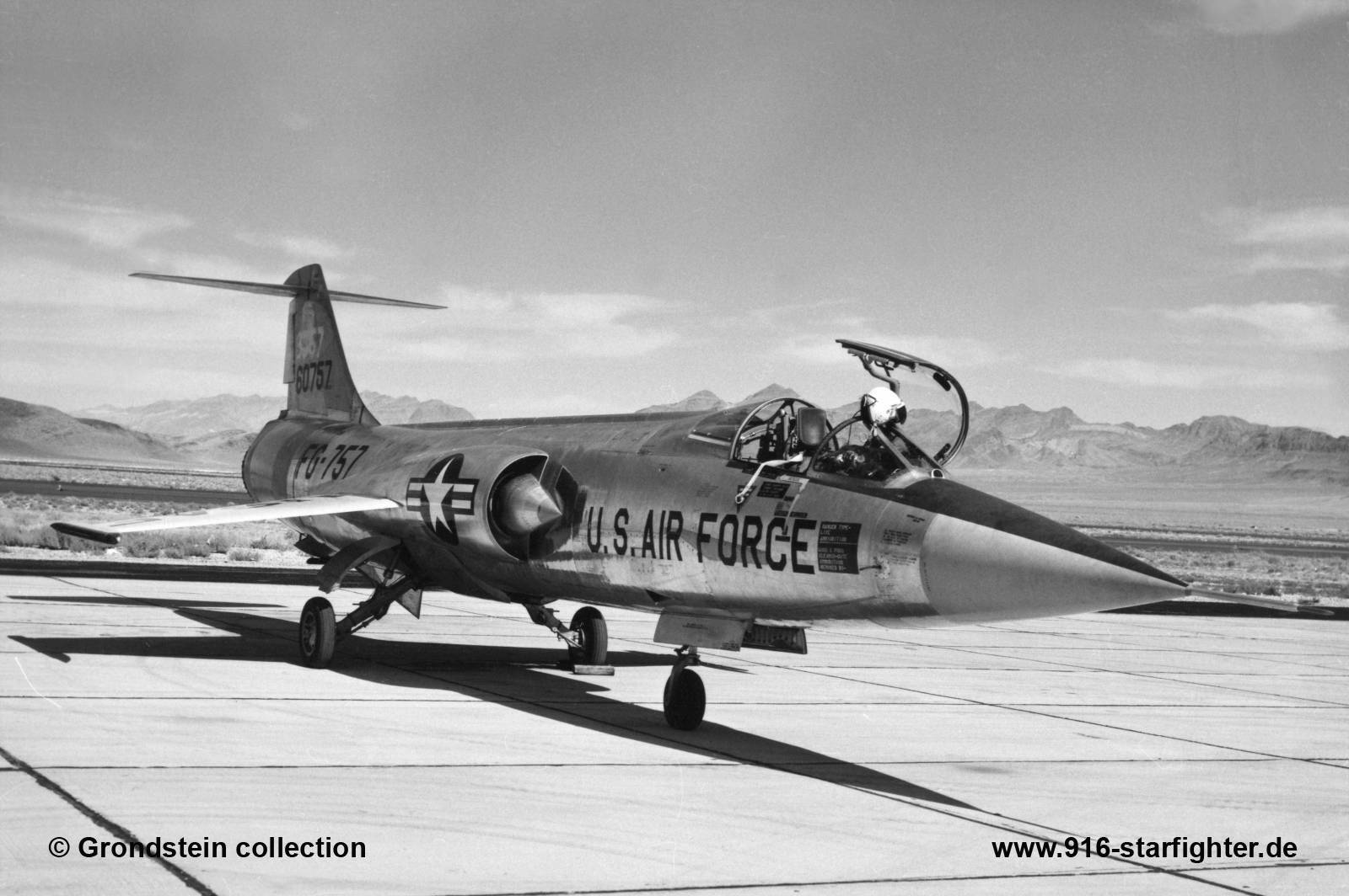 F-104A 56-0757 "FG-757" US Air Force as Navy support at NAF China Lake in 1959 F-104A, construction number 183-1045, model 183-93-02, US serial number 56-0757, built by Lockheed delivery date August 19, 1957; AFSC (1957-May 1959); 1959 at NAF China Lake for US Navy coded as 60757 "China Lake" with NMC crashed on takeoff on April 7, 1961 just off the north end of the runway at George AFB on a return flight to China Lake during US Navy Sidewinder missile tests. Pilot U.S. Marine Corp Capt. David L. Hess lost his life from injuries sustained on April 28, 1961, written off U.S. Marine Corps Captain David L. Hess lost his life from injuries sustained on April 7th when his F-104A Starfighter (56-0757) crashed on takeoff from George AFB on a return flight to China Lake. The cause was determined to be a failure of the George AFB flight line personnel to activate all of the circuit breakers which prevented the afterburner from firing during the take-off. The afterburner not firing affected the F-104's take-off performance into a tailwind. copyright @ Grondstein collection