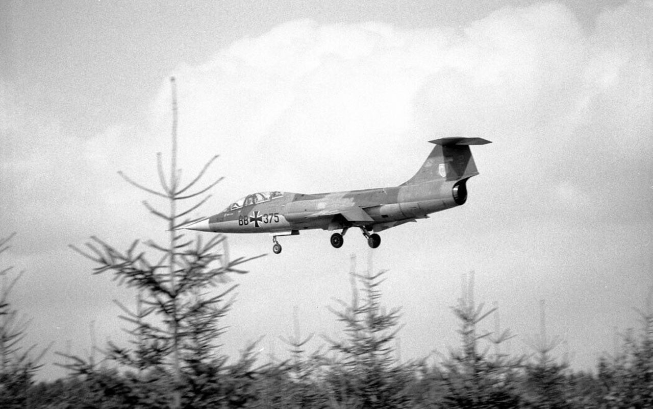 F-104F BB+375 Waffenschule der Luftwaffe 10 (WaSLw 10) in 1965 F-104F, construction number 283-5047, company model 483-04-08, US serial number 59-4994, built by Lockheed manufactured by Lockheed Aircraft Corporation (LAC), Burbank acceptance date September 22, 1959 without test flights with USAF serial number coded "59-4994" and with F-104D canopy version used as instructional airframe (GIA) at Palmdale for German technical personal; airlifted to TSLw 1 (Technische Schule der Luftwaffe 1) at Kaufbeuren AB on January 18, 1960 coded BF+011 instructional airframe (GIA) with TSLw 1 without test flights; May 25, 1961 modified to F-104F standards at Messerschmitt to Messerschmitt January 1961 for several modification tests; camouflage trials in December 1963; first flight on February 13, 1964 BB+375 ErpSt 61 at Manching AB delivery date on July 20, 1964; WaSLw 10 (OTU Operational Training Unit) at Jever AB on March 4, 1965 camouflage scheme "Norm 62" according tech order "TA-196" in 1965 coded 29+01 in May 1968; withdrawn from use (grounded) in April 1971 according government orders; struck off charge order (AVA) June 29, 1971 in 1971 to road show "Unsere Luftwaffe"; noted at ILA in Hannover April 20, 1972 without engine scrapped at LVR 3 (Luftwaffenversorgungsregiment 3) at Erding AB in 1973; dump at Erding AB in May 1978 noted; scrapped. copyright © Frank Matthes