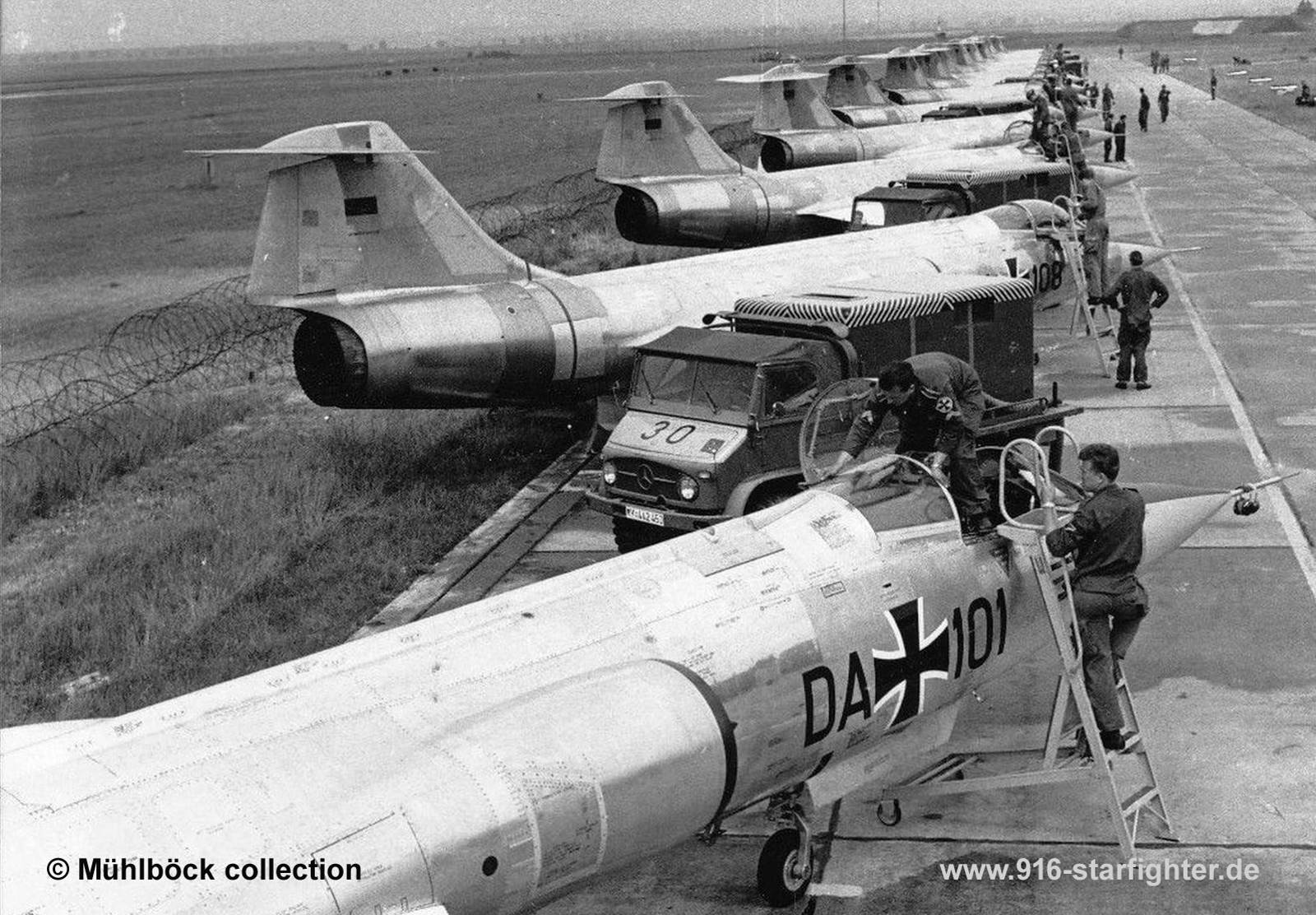 F-104G DA+101 JaboG 31 commissioned as the first operational Starfighter wing on June 20, 1962 F-104G, construction number 683D-8004, company model 683-10-19, built by Fokker manufactured by North Group (ARGE-Nord); assembled with Lockheed produced parts; coded KG+104 first flight April 6, 1962 at Fokker-Schiphol acceptance date May 14, 1962 in Fighterbomber version by BABwFokker (RNAF-MTA) DA+101 JaboG 31 "Boelcke" at Norvenich AB delivery date on May 17, 1962 in Silver-finish colors DR+111 LPR 1 at Erding on March 11, 1963 for upgrading according project "Balance" (system upgrading to higher modification level) coded DR+111 stored on March 18, 1964; to Messerschmitt on December 14, 1964 for modifications DA+250 JaboG 31 "Boelcke" on July 12, 1965; LPR 1 camouflage scheme "Norm 62" according tech order "TA-196" in June 1966; JaboG 31 on October 27, 1966 23+29 IRAN at SABCA on June 21, 1968 with 654 flight hours, back to JaboG 31 on January 22, 1969 in June 1974 on loan at Decimomannu AB; back to JaboG 31 on December 8, 1975 withdrawn from use and stored in airworthy condition as attrition reserve aircraft at LwSchleuse 11 on February 2, 1983 with 2.834 flight hours struck off charge order (AVA) May 29, 1984MAP (Military Assistance Program) to Turkey on July 5, 1984 coded "6-004" (62-8004); 1984 coded "6-004" with 6.AJU at Bandirma AB withdrawn from use and stored on April 21, 1989 at Eskisehir AB (1.Air Supply and Maintenance Center); CFE cut-up on August 4, 1995; scrapped. Project "Balance": upgrade 19 F-104G with retrofit kits at LPR 1 at Erding AB and received DR+xxx codes with their old three-digit squadron numbers. After the upgrade, these aircrafts either returned to their squadrons or directly to Manching for disassembly for the Columbus program. copyright © Mühlböck collection