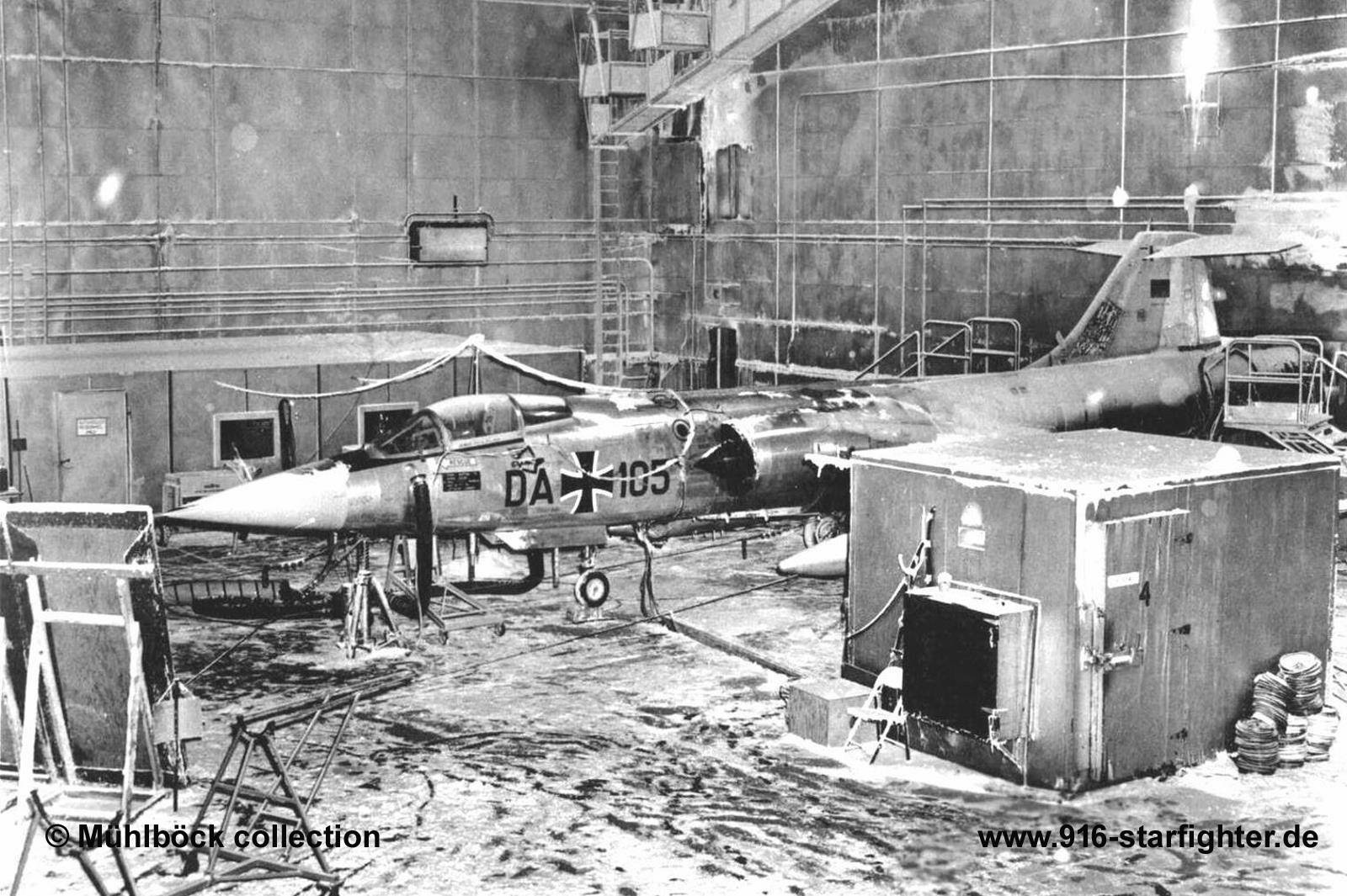 F-104G DA+105 during climatic weather tests at Eglin AFB, Florida in June 1961 F-104G, construction number 683-2008, company model 683-10-19, built by Lockheed manufactured by Group USA (ARGE-USA); assembly in Fighterbomber version according contract lot 1 first flight May 31, 1961 at Lockheed-Palmdale; flight tests flown with register number "108" DA+105 with "Joint Test Force" at Palmdale AP for "Category I" tests; for climatic tests at Eglin AFB, Florida on June 11, 1961 and for cold weather tests at CFB Cold Lake, Canada on December 6, 1961; returned to Palmdale on April 5, 1962 accepted on May 31, 1962 by BABwLockheed; airlifted to Manching September 18, 1962 with 74:50 flight hours; project "Balance" (upgrading) was not implemented YA+105 Messerschmitt test flight November 8, 1962; on March 18, 1963 delivered to ErpSt 61 at Manching AB stored for more than a year at Det. Istres of ErpSt 61 and used for spare parts; camouflage scheme "Norm 62" according tech order "TA-196" in 1965; autopilot tests at Istres in 1965 20+08 radar altimeter tests in 1968; May 1969 at Cazaux, France for Matra bombs tests heavily damaged on December 8, 1971 after a bird strike during low level bomb run (BL-755 bomb test) at West-Freugh range, UK airlifted with C-160 Transall transporter on January 12, 1972 to MBB (Messerschmitt-Bölkow-Blohm); back to ErpSt 61 on February 22, 1972 last flight by WTD 61 on April 7, 1989 with 1.833 flight hours; struck off charge order (AVA) November 8, 1989; to WTD 61 on May 19, 1992 preserved at WTD 61 without serial (painted "Nr 1" only) 1994; DASA restoration November 21, 1994 Gate Guard on pole at Manching AB and coded 20+08 again with WTD 61 marks on April 6, 1995; late 2019 the Gate Guard of WTD 61 was taken down September 13, 2022 erected again in a new position at Manching AB within the WTD 61 area; May 2025 noted. copyright © WTD 61 archive via Peter Mühlböck