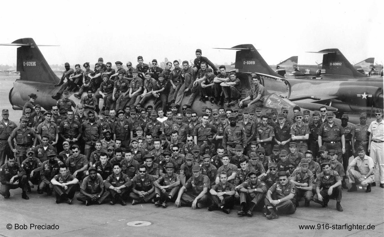 435 TFS personel posing in front of 56-0936 during time at Udorn late 1966 F-104C, construction number 183-1224, model 483-04-05, US serial number 56-0936, built by Lockheed manufactured by Lockheed at Burbank, California; available February 5, 1959 accepted March 13, 1959 and was delivered to the USAF on March 17, 1959 October 4, 1959 479th Tactical Fighter Wing (Tactical Air Command), George AFB, CA 435th TFS September 19, 1961 to Ramstein AB, Germany from George direct, until January 22, 1962 September 24, 1965 to 436th Tactical Fighter Squadron (TAC), DaNang AB, South Vietnam November 22, 1965 to 435th Tactical Fighter Squadron (TAC), Kung Kuan AB, Taiwan December 18, 1965 to 479th Tactical Fighter Squadron (TAC), George AFB, CA November 21, 1966 to 435th Tactical Fighter Squadron (TAC), Udorn RTAB, Thailand March 2, 1967 to 8th Tactical Fighter Wing (PACAF), Udorn RTAB, Thailand May 29.1967 to 432nd Tactical Reconnaissance Wing (PACAF), Udorn RTAB, Thailand August 15, 1967 to Puerto Rican Air National Guard, Ramey AFB, Puerto Rico October 19, 1967 to 198th TFS 156th Tactical Fighter Group (ANG), Puerto Rico August 4, 1975 dropped from the USAF inventory by transfer to AF Academy; August 5, 1975 flown to Peterson AFB at Edward J. Peterson Air & Space Command Museum, Colorado Springs, Colorado in 2003 repainted as F-104A "60808" of 83 FIS serial number 56-0808, to depict heritage of the F-104 with the Air Defense Command (ADC) repainted in August 2007; October 2024 noted. copyright © Bob Preciado