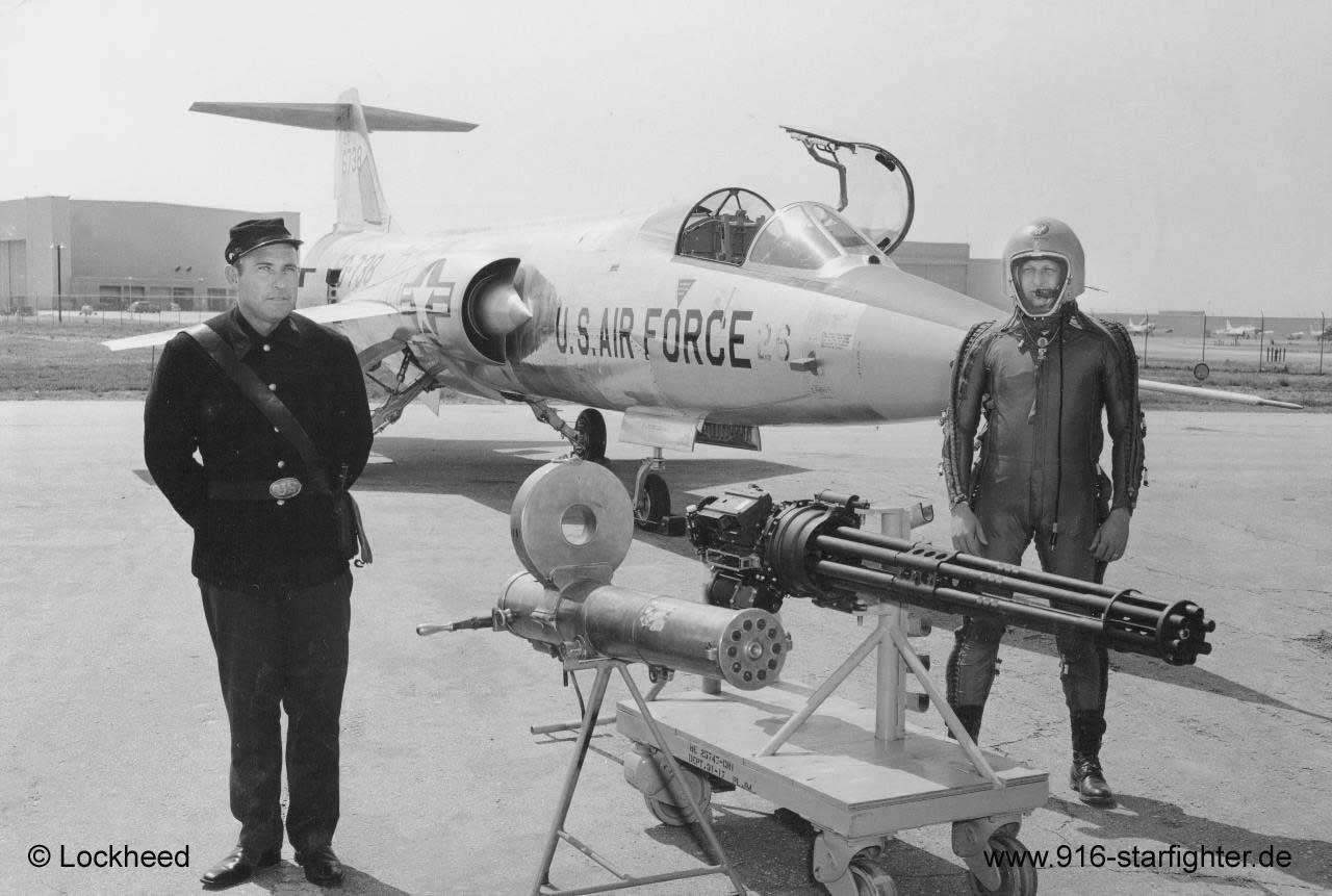 Vulcan Gatling gun The M61 Vulcan is a hydraulically or pneumatically driven, six-barreled, air-cooled, electrically fired Gatling-style rotary cannon which fires 20 mm rounds at an extremely high rate. The M61 and its derivatives have been the principal cannon armament of United States military fixed-wing aircraft for fifty years. The first aircraft to carry the M61A1 was the C model of the F-104, starting in 1959. The Vulcan is a Gatling gun: each of the cannon's six barrels fires once in turn during each revolution of the barrel cluster. The multiple barrels provide both a very high rate of fire - around 100 rounds per second - and contribute to prolonged weapon life by minimizing barrel erosion and heat generation. Mean time between jams or failures is in excess of 10,000 rounds, making it an extremely reliable weapon. The success of the Vulcan Project and its subsequent progeny, the very-high-speed Gatling gun, has led to guns of the same configuration being referred to as Vulcan Cannon, which can sometimes confuse nomenclature on the subject. copyright © Lockheed via Peitzmeier archive