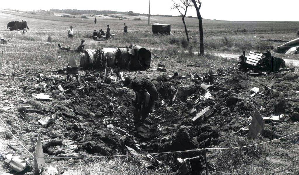 F-104G DA+259 JaboG 31 at Leeuwarden AB 1965 F-104G, construction number 683D-9047, company model 683-10-19, built by SABCA manufactured by West Group (ARGE-West); assembly start at SABCA-Gosselies June 18, 1963 first flight September 25, 1963 in AWX (All Weather Fighter) version coded with construction number "9047" camouflage scheme "Norm 62" according tech order "TA-196"; acceptance date by BABwSABCA December 23, 1963 7 SABCA factory test flights and 2 military test flights with 8 flight hours; military test flights at Gosselies: 26.11.1963 and 23.12.1963 (test) delivery date January 3, 1964 coded KH+126; LVR 3 (Luftwaffenversorgungsregiment 3) at Manching AB on January 16, 1964 for modifications and upgrading to Messerschmitt for Fighterbomber version modification on March 4, 1964 DA+259 JaboG 31 "Boelcke" at Norvenich AB delivery date on September 17, 1964 crashed June 12, 1965 at Suippes Bombing Range, France after compressor stall due to an IGV failure, pilot ejected safely; written off, struck off charge order (AVA) April 29, 1966. Inlet Guide Vanes The purpose of the inlet guide vanes in a gas turbine is to direct the air-flow to the compressor. By transporting the air at the proper angle the inlet guide vanes ensure most efficient compression. Inlet guide vane failures can plague the functioning of the entire gas turbine. During the AFCENT Tactical Weapons Meet at Chaumont AB in June 1965 DA+259 was lost. It crashed in a field, about 1 km from Mahrecourt, France, near the Suippes Range. During the third approach for an air-to-ground attack, the aircraft suddenly encountered an engine failure and subsequent rapid loss of height, the pilot ejected in time and was unhurt. crashed June 12, 1965 at Suippes Bombing Range, France copyright © Gerrit Hiemstra